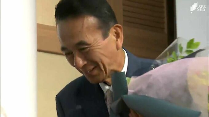 「きのう途中で相談役は引き上げて車中で当選確実を聞いたそうで、実際の場面を見られなくて残念だと、本当におめでとうと話をいただきました」