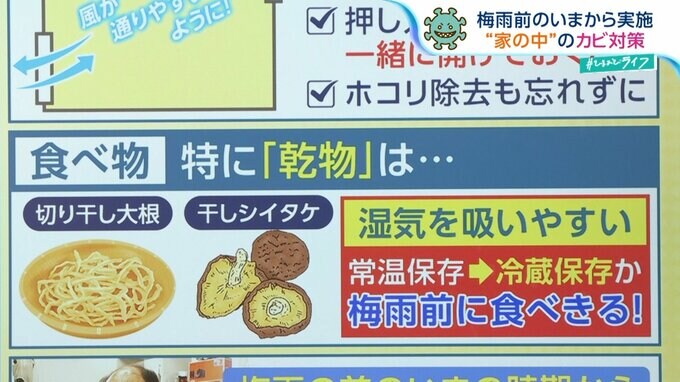 「切干大根」や「干しシイタケ」などの乾物は湿気を吸いやすいので、これからの時期は常温保存ではなく冷蔵庫に入れるか、梅雨前に食べ切るのがおすすめです。