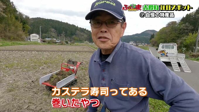 そんな中、堂々と「古殿名物」を掲げた「カステラ巻き」の文字を発見。