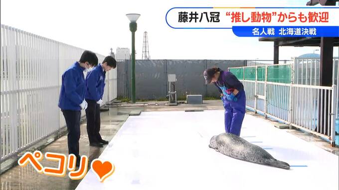 ゴマフアザラシのおじぎに、藤井八冠もペコリと頭を下げます。