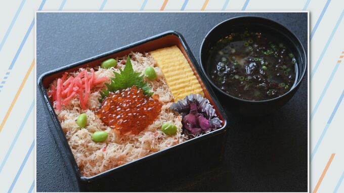 藤井八冠は26日、「紋別産ずわい蟹いくら重」を選びましたが、27日は「勝負師のホタテカレー麻婆豆腐丼」を注文。カレースパイス入りの麻婆豆腐に、地元産のホタテフライが添えられています。