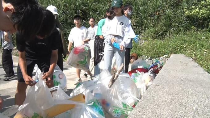 修学旅行で宮古島を訪れた中学生たちが島の海岸を清掃し、環境問題への理解を深めました。