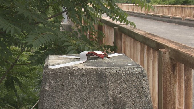 「こちらの橋に設置されていたモモの像が無くなり、橋の銘板も無くなっています」
