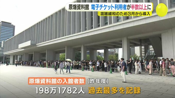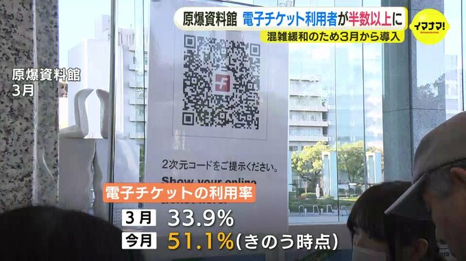 広島市によりますと、3月時点では電子チケットを購入・予約している人の割合は全入館者数のうち3割程度でしたが、今月には26日時点ですでに51.1パーセントに達したということです。