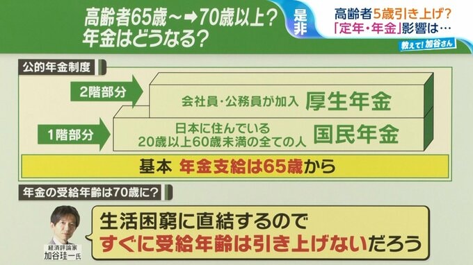加谷氏は「生活の困窮に直結するので、すぐに受給年齢は引き上げないだろう」と話します。