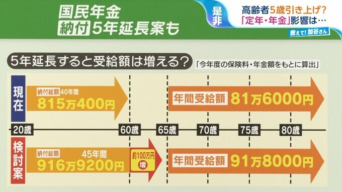 国民年金に関しては、納付を5年延長するという案も出ています。