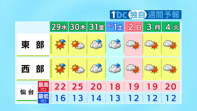 初日の30日(木)は晴れて仙台の最高気温は25℃まで上がる予想ですが、2日目以降は最高気温が18~20℃と日中でもやや肌寒くなりそうです。