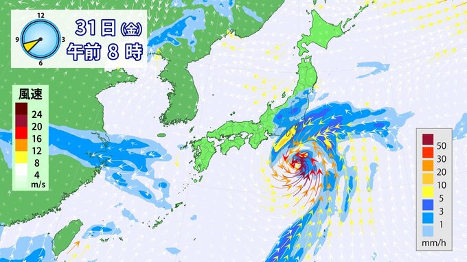 3. 【大雨情報】台風+前線で“線状降水帯”発生か 四国・東海地方では災害発生の危険度が急激に高まる可能性 この先の雨と風のシミュレーション