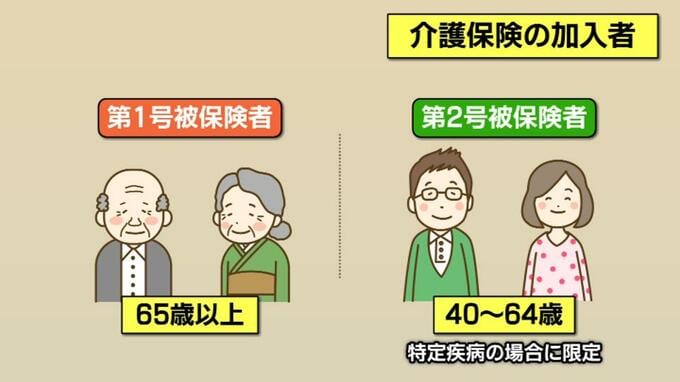 介護保険の加入者は、65歳以上の「第1号被保険者」と40歳~64歳の「第2号被保険者」に分けられる。