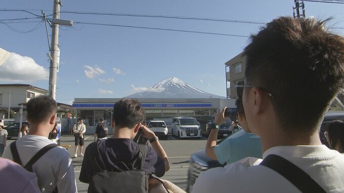山梨県の富士急行線 河口湖駅近くにあるコンビニは建物の上に富士山がのったような写真が撮影できるとSNSなどで外国人観光客に人気となった一方、危険な道路の横断など迷惑行為が相次ぎ富士河口湖町は対策として先週、黒い幕を設置しました。