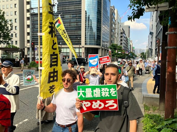 5月26日、福岡市中心部の天神で、アラブ系のルーツを持つ人々や留学生、それに日本人も加わって、デモが行われました。主催者側発表で約300人、私も取材に行って「多いな」と思いました。「虐殺止めろ」「戦争止めろ」と即時停戦を訴えました。