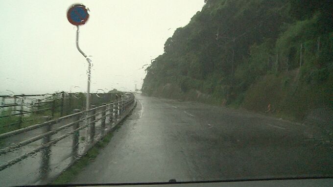 「午前9時の宮崎県日南市の様子です。強い風をともなった非常に激しい雨が降っています。まさに横なぐりの雨です」