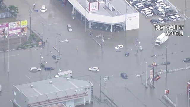 「大雨から一夜が明けました。愛知県豊川市は広い範囲で冠水しています」