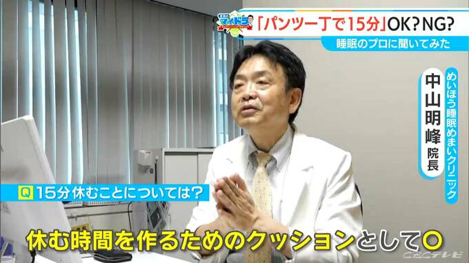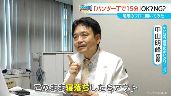 「普通の人がまねをすると、15分の間に寝落ちをする。これはものすごく危険です。体が一晩寝たと勘違いして、その夜が眠れなくなって、1週間のリズムがずれてしまうのが危ない」