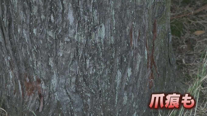 縦横無尽に周辺を駆け回ったのか辺りの田んぼにはクマのものとみられる足跡が数多く残っています。さらに近くの屋敷林にはクマの爪痕とみられるものも…。