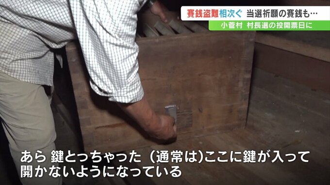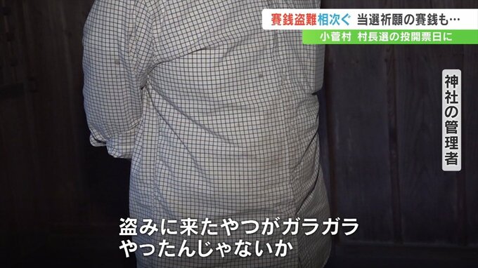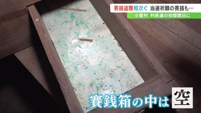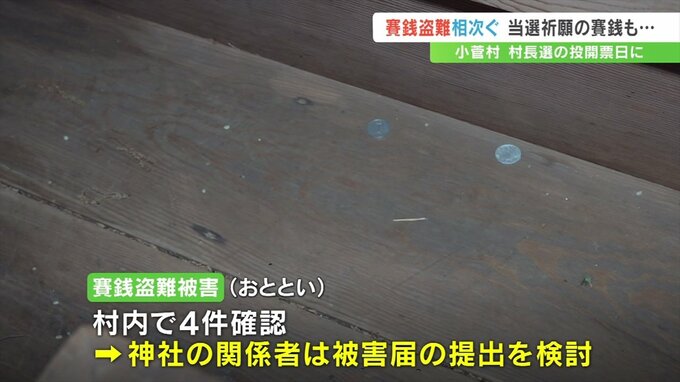 村内ではさい銭の盗難被害が26日に4件確認されていて、神社の関係者は被害届の提出を検討しています。