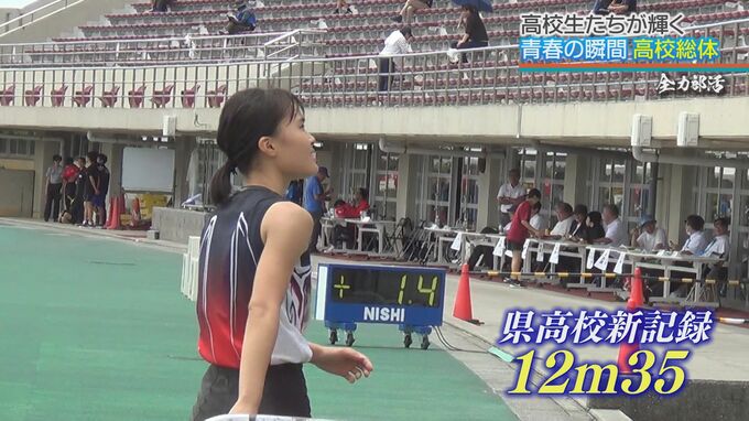 陸上競技・三段跳びでは、全国のメダルを見据える好記録が誕生した。那覇国際3年の喜久里彩吹。「大事にしたい」と語っていた1回目で自身の持つ県高校記録を更新する12m07を跳ぶ。