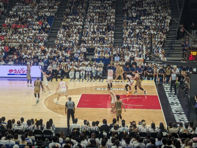 しかし山崎稜のスリーポイントやドゥエイン・エバンスのアタックで突き放す広島。試合は、ファイナルにふさわしい手に汗握る展開となります。