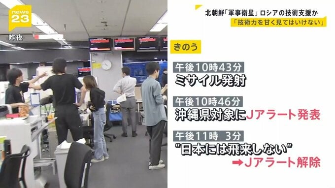 防衛省によると発射時刻は、27日午後10時43分。その3分後、政府は沖縄県を対象にJアラートを発表しましたが、17分後、“日本には飛来しない“として解除しました。