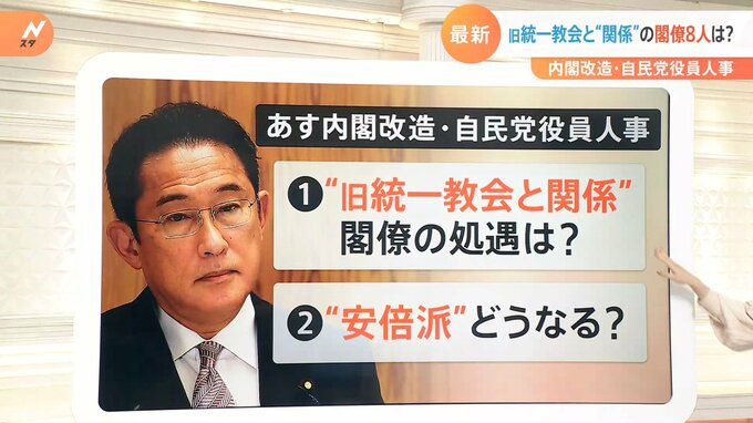 8月10日、内閣改造と自民党役員人事が行われます。ポイントは、旧統一教会と関係のある閣僚の処遇はどうなるのか?安倍派がどうなるか?ということです。スタジオで専門家が解説します。ホラン千秋キャスター:10…