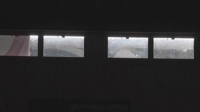 落ちた天井板はL字型で長さはおよそ17メートルと6メートル、面積はおよそ76平方メートルで材質は石こうボードとみられます。