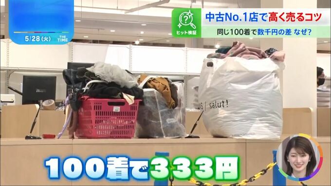 一方、別の女性は服100着で査定額は、わずか333円。1000円ぐらいを期待していただけに「こんなもんなんですね…」と少々がっかりの様子。同じノーブランドの服100着でも何が違うのでしょうか?