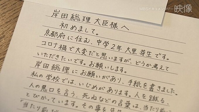 学校や先生に相談しても理解してもらえない。2022年9月、芽生さんはある人物に手紙を出すことにした。届ける先は学校や教育委員会ではない。日本のトップ、総理大臣だ。