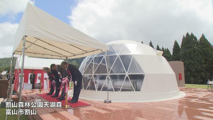 富山市の南部、細入地域にあるキャンプ場「割山森林公園天湖森」が6月1日、リニューアルオープンします。注目はサウナ付きのグランピング施設…。29日は完成を祝って記念のセレモニーが行われました。6月1日、リニ…