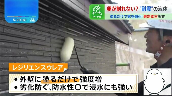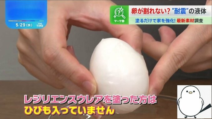 マーケティング部の原千晶部員が、生卵にレジリエンスウレアを塗って試してみました。
