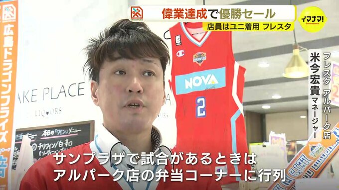 広島ドラゴンフライズ優勝の偉業達成を受けて、県内では「優勝セール」も始まりました。