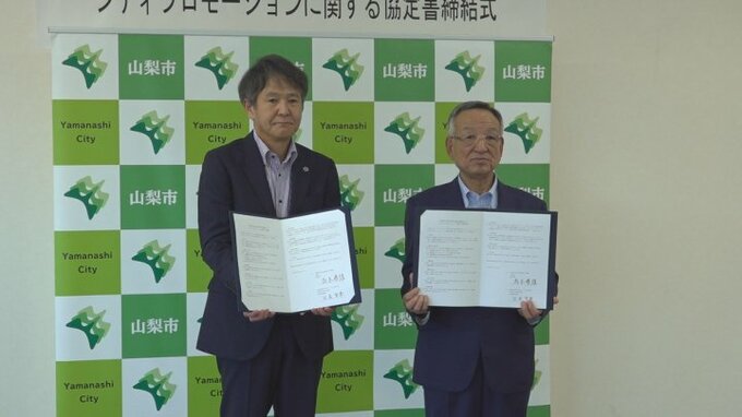 山梨県山梨市と山梨中央銀行が地元の魅力発掘や情報発信などで連携協定を結びました。