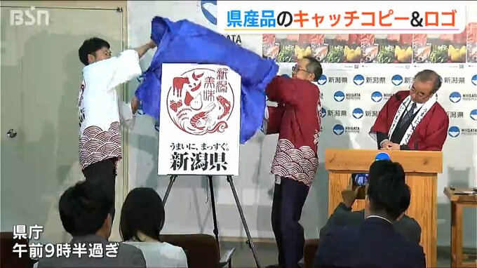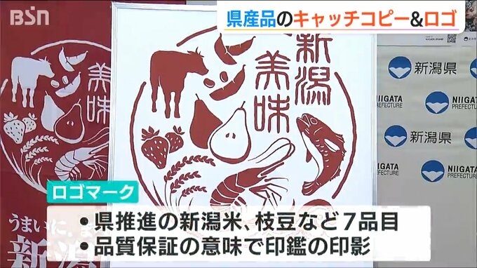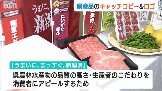 枝豆や新潟和牛そしてルレクチェといった新潟を代表する農産物の数々。県はこうした県産食品などをPRするため29日、新しいキャッチコピーとロゴを発表しました。今後、ポスターなどに活用し販売促進につなげます。