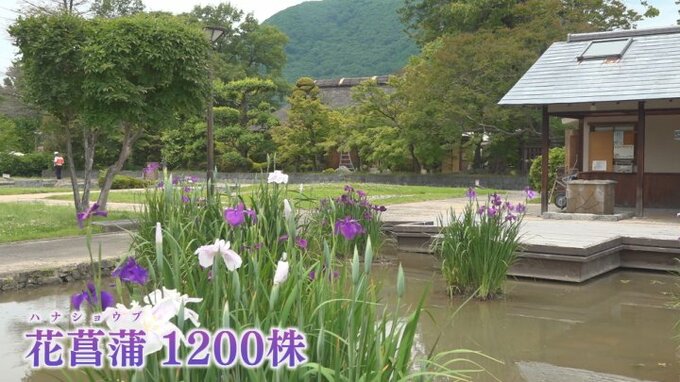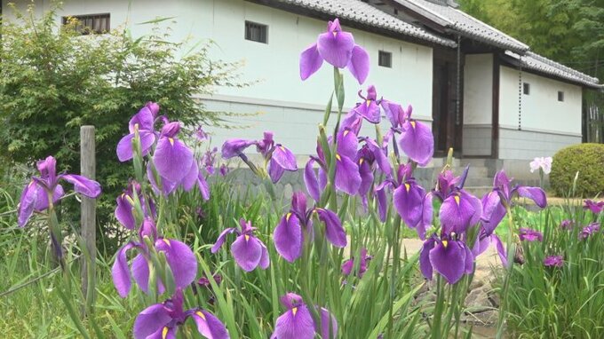 山梨県指定の文化財、八田家書院の前にあるふたつの池で、およそ1200株のハナショウブが見頃を迎えました。
