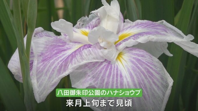 山梨県笛吹市の公園でハナショウブが見頃を迎えています。