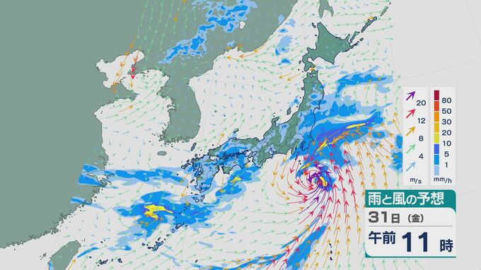 31日の朝から昼前にかけて伊豆諸島に最も近づき、31日の昼過ぎまでには温帯低気圧に変わる見込みです。