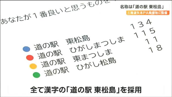 東松島市の「道の駅」は三陸自動車道上り線の矢本パーキングエリア隣接地に、飲食物の物販やコンビニなどを整備するもので、今年11月下旬の開業を目指して工事が進められています。市は施設の名称について、市内の中学生およそ300人に、「東松島」の駅名をひらがなや漢字でどのように表すべきか、アンケートを実施。協議の結果、最も支持された「すべて漢字」を採用することになりました。