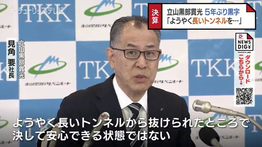 立山黒部貫光 見角要社長:「2018年度以降、コロナ禍を経て、実に5年ぶりの黒字決算となった次第でございます」
