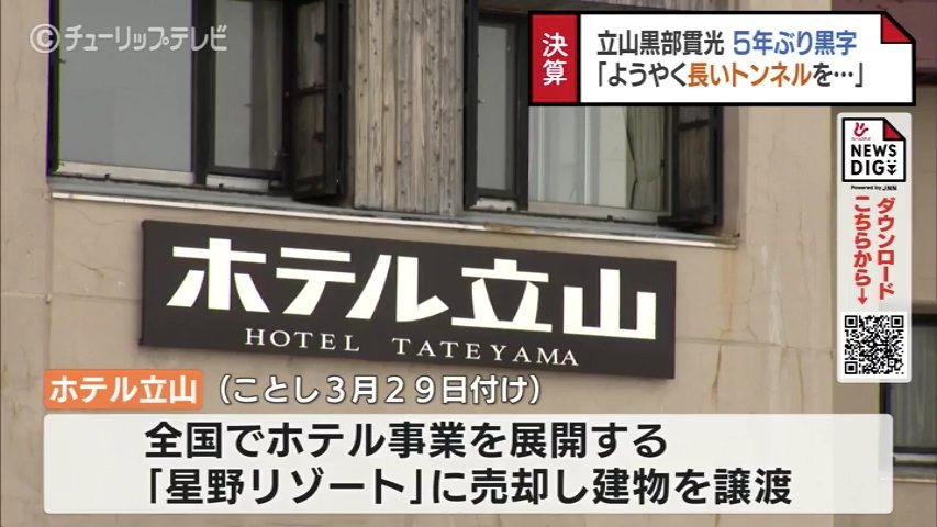 また、ことし3月29日付けで、全国でホテル事業を展開する「星野リゾート」に室堂の「ホテル立山」を売却し、建物を譲渡したと報告しました。売却額は公表していません。