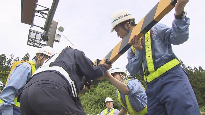 梅雨の時期に備えて、大雨で国道が通行止めになったことを想定した通行規制の訓練が福島県いわき市で行われました。訓練を行ったのは、国道49号や国道6号を管理する国交省磐城国道事務所の職員およそ30人です。訓…