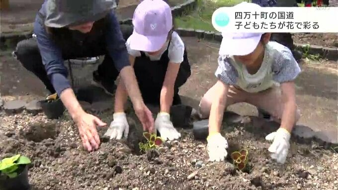 観光客や歩き遍路の人達に気持ち良く通行してもらおうと高知県四万十町の小学生たちが国道沿いの公園に花を植えました。四万十町下呉地、国道56号沿いにある『水辺(みずべ)の公園』にやって来たのは影野(かげの…