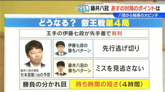 そうですね、まず、王手をかけている伊藤七段は、あす(31日)先手番です。先手番の方が、自分が思い描いた将棋ができるので、有利と言われています。