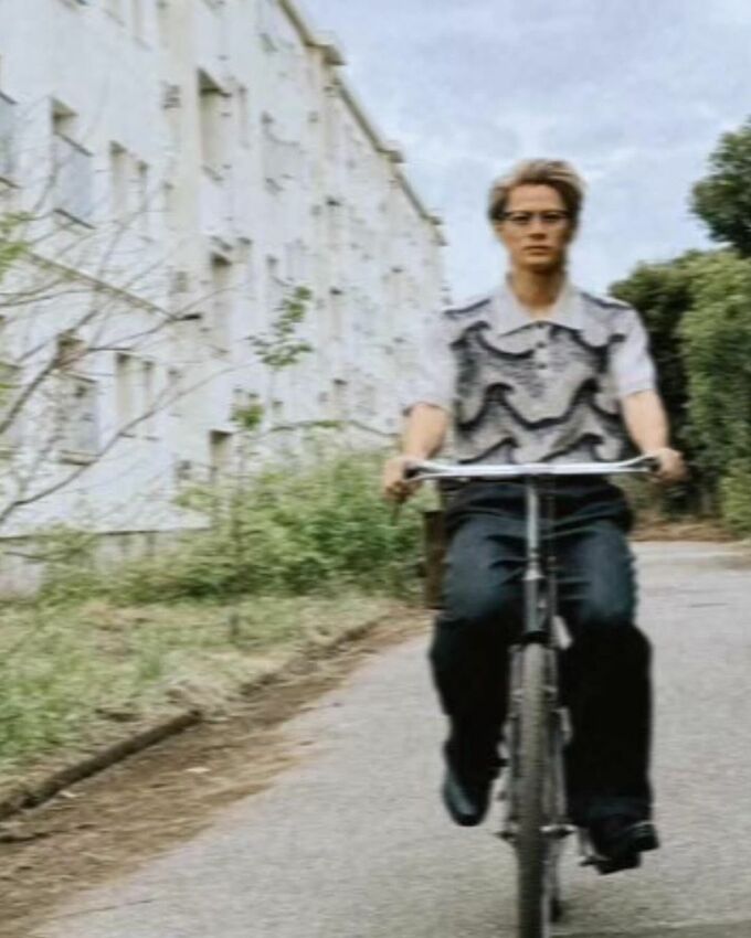 また「BON」MV劇中の "紙芝居のおじさん" の扮装でスケートボードを駆り、昔ながらの自転車で疾走する写真を投稿。