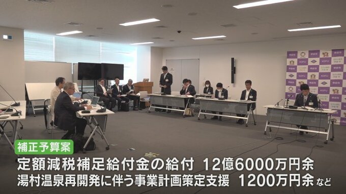 補正予算案には6月に始まる定額減税で減税しきれない人に差額を給付する事業費として12億6000万円余りや、湯村温泉の再開発に伴う事業計画の策定に対する支援として1200万円余りなどが盛り込まれています。