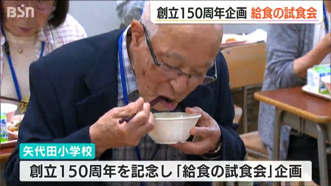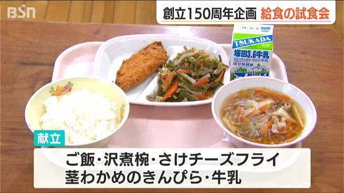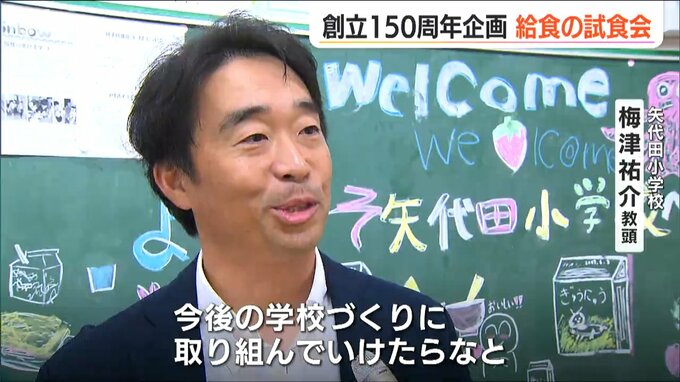 これは、矢代田小学校の創立150周年を記念した企画「給食の試食会」です。