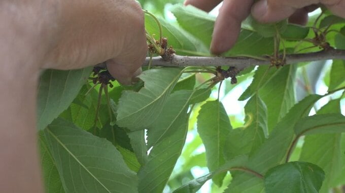 「南アルプス市桃園のサクランボ畑です。こちらの畑でも収穫間近のサクランボが無くなっていたということです」