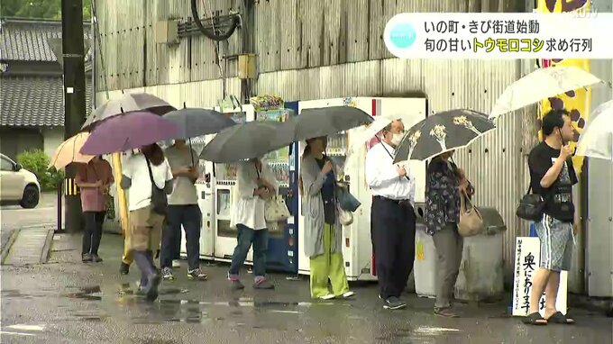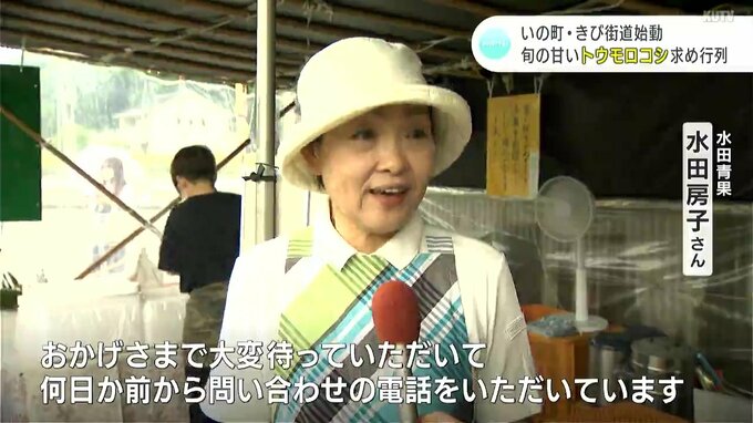 販売初日を迎えた「水田青果」には雨にもかかわらず大勢の人たちが訪れ行列に。午前5時に収穫したばかりの新鮮なトウモロコシを買い求めていました。