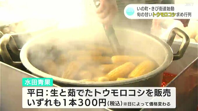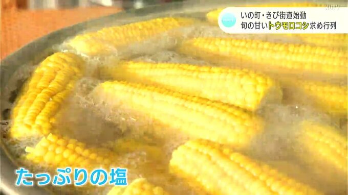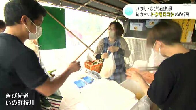 いの町枝川(えだがわ)の通称「きび街道」では、毎年この時期に旬のトウモロコシの販売が行われています。