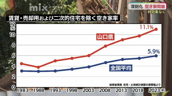 総務省は4月、全国の空き家状況の調査結果を発表しました。5年に一度の調査です。賃貸や売却用の空き物件、別荘などを除いた全国の空き家率は、5.9パーセントでした。5年前より0.3ポイント上昇しました。