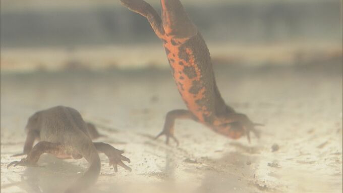 湿度に敏感な性質を生かし、カエルとイモリが天気予報に挑戦です。