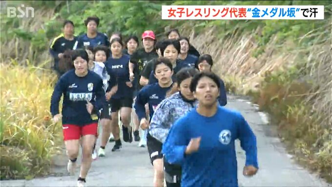 十日町市にある桜花レスリング道場。1日、大自然の中で坂道を走り込んでいたのは女子レスリングの選手たちです。